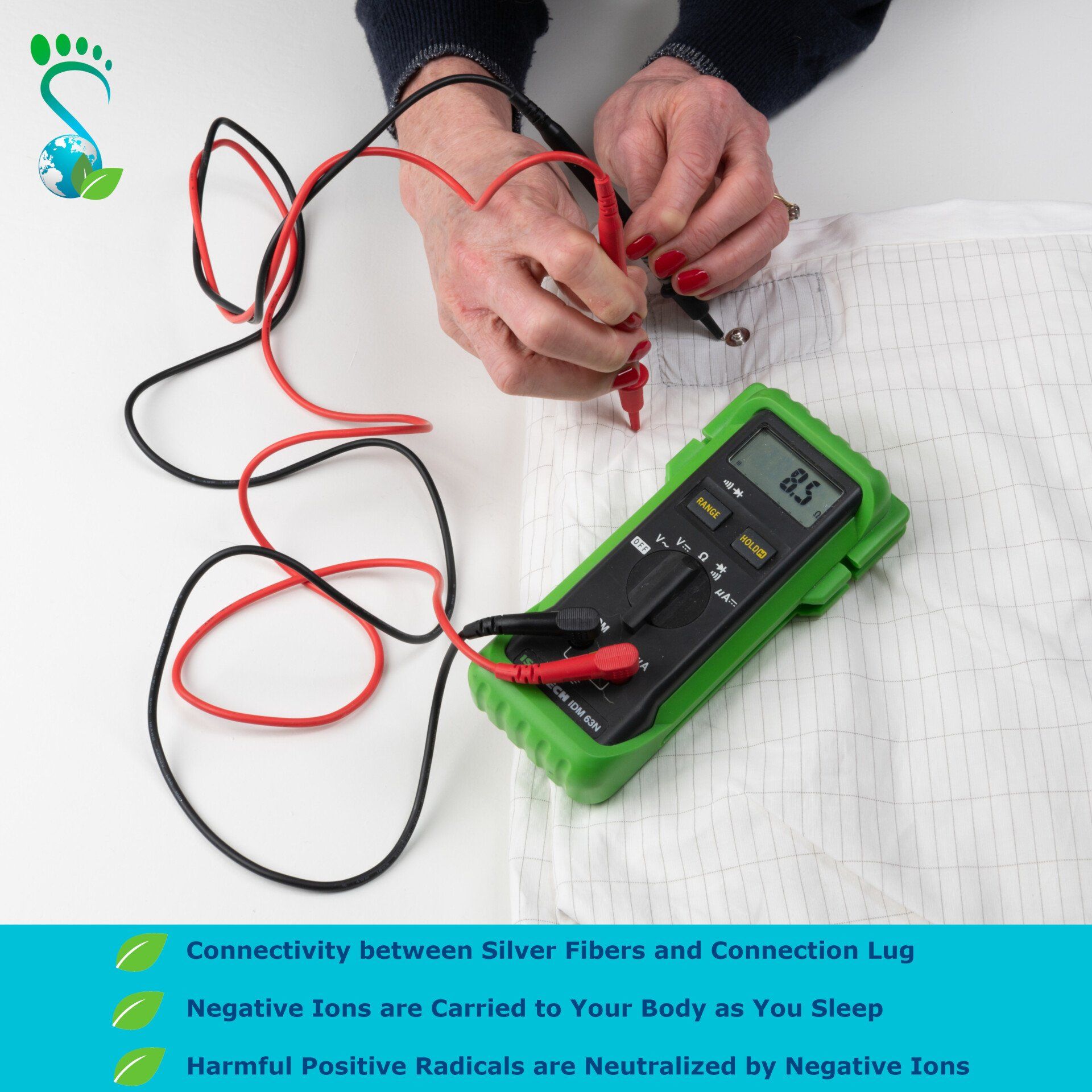 - The earthing sheet is easy to use. Push the plug provided into the wall socket and connect the cable to the plug and to the connection on the sheet. There is no need to switch the plug on. Once the earthing sheet has been plugged in, you can leave the plug in the socket 24/7 without disconnecting it. You need only disconnect the sheet when you want to wash it. Our sheets are easy to care for. They can be machine washed with usual detergent but should not be treated with fabric softner.
