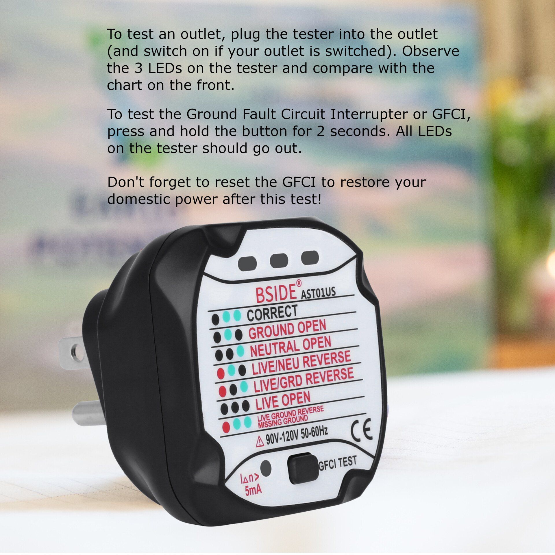- Comes with an easy-to-follow user guide to help identify faults. The outlet tester can be used to detect whether the live, neutral or earth wire is connected correctly or if any are missing or reversed. 90-120v Voltage range, specifically for the US.